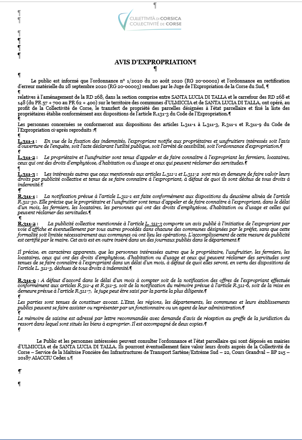 Avis d'expropriation-Santa Lucia di Tallà (Corse-du Sud)