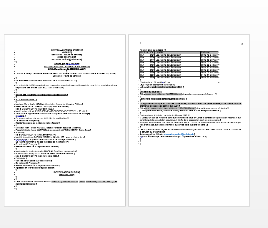 Avis de création de titre de propriété-Commune d'Ajaccio (Corse-du Sud)