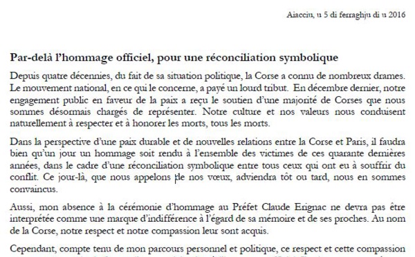 CP - PAR-DELÀ L’HOMMAGE OFFICIEL, POUR UNE RÉCONCILIATION SYMBOLIQUE - 05/02/2016