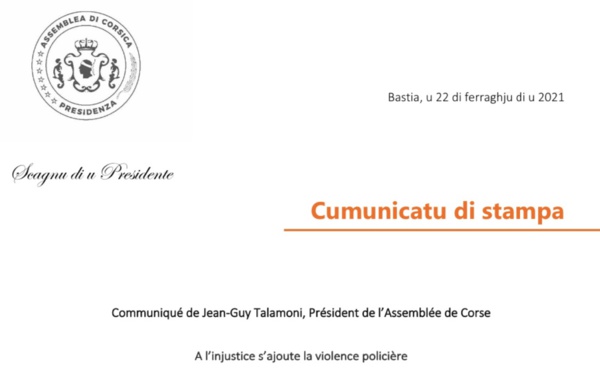 Communiqué de presse du Président de l'Assemblée de Corse Comme à son habitude, Paris a privilégié, sur le dialogue, la répression débridée. Après une manifestation purement pacifique, de jeunes...