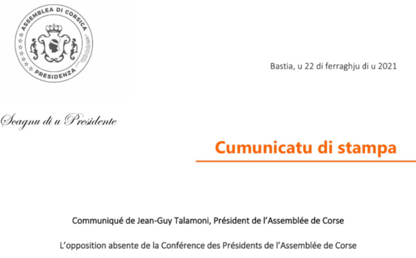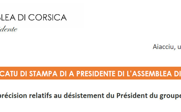 Communiqué de presse du Président de l'Assemblée de Corse Suite aux événements de ce matin, j’ai, comme annoncé, réuni la Conférence des présidents de groupes de l’Assemblée de Corse. Il me semblait...