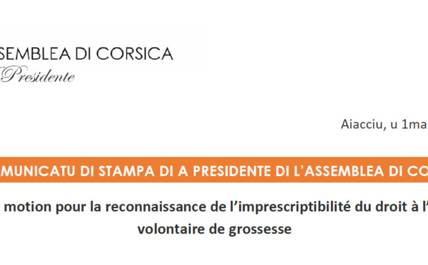 La Présidente de l'Assemblée de Corse dépose une motion en faveur de l'imprescribilité du droit à l'IVG - 01/07/2022