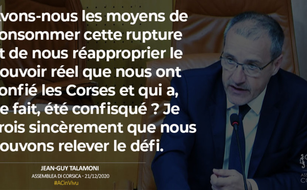 Discorsu di u Presidente di l'Assemblea di Corsica, Jean-Guy Talamoni - 26/11/2020 Care culleghe, cari culleghi, Nanzu di tuttu, vogliu salutà Jean-Charles Giabiconi, chì hà da esse oramai presente...