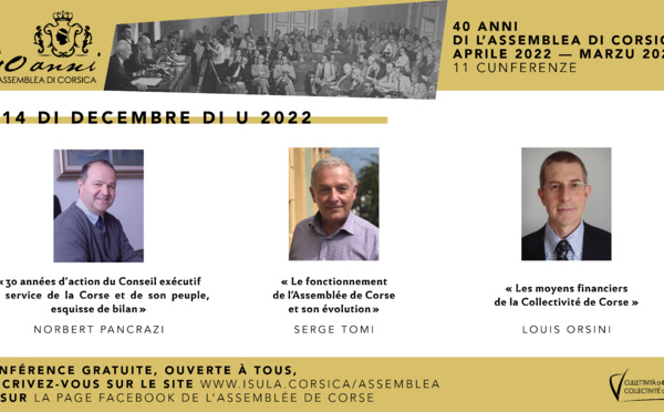 Cette conférence se déroulera le 14 décembre à partir de 18h30 au Musée Fesch in Aiacciu, elle sera filmée et diffusée sur le site et les réseaux de l'Assemblée de Corse. Les conférences sont...