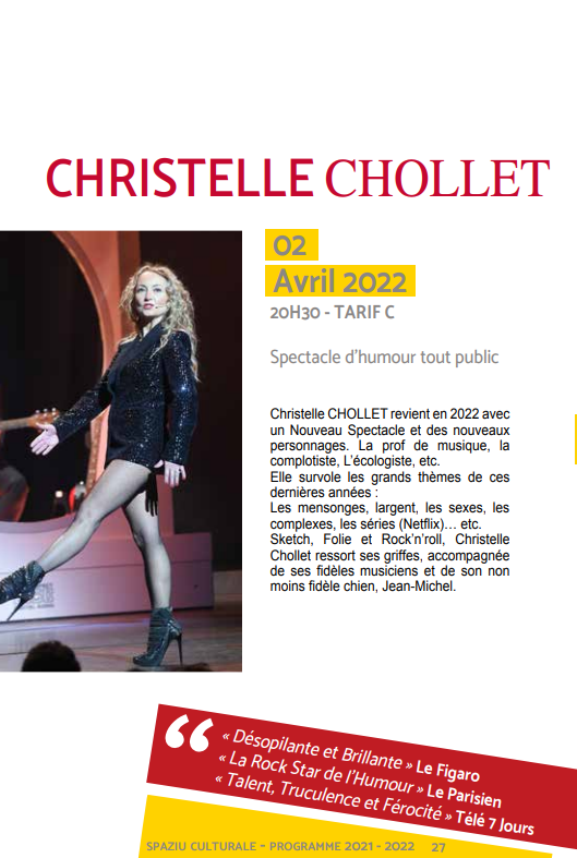 Samedi 2 Avril - 20h30 Spaziu Culturale Carlu Rocchi - Biguglia Plus d'infos en téléchargement. |