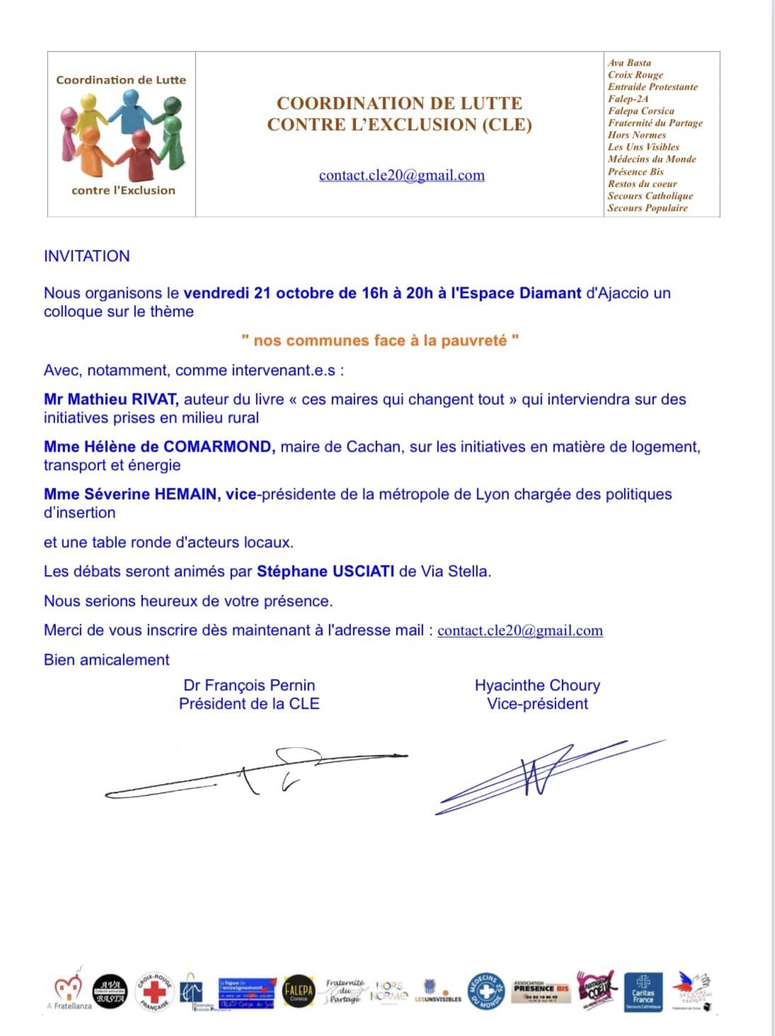 21 octobre à partir de 16h. Espace Diamant - Ajaccio Inscription obligatoire : cle20@gmail.com Plus d'infos en téléchargement ou sur le site. |