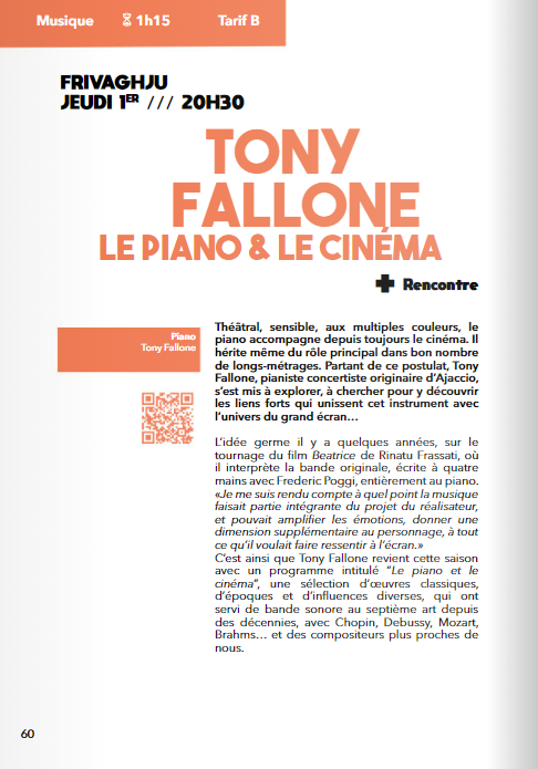 Concert : Tony Fallone "Le piano et le cinéma" - Espace Diamant - Aiacciu
