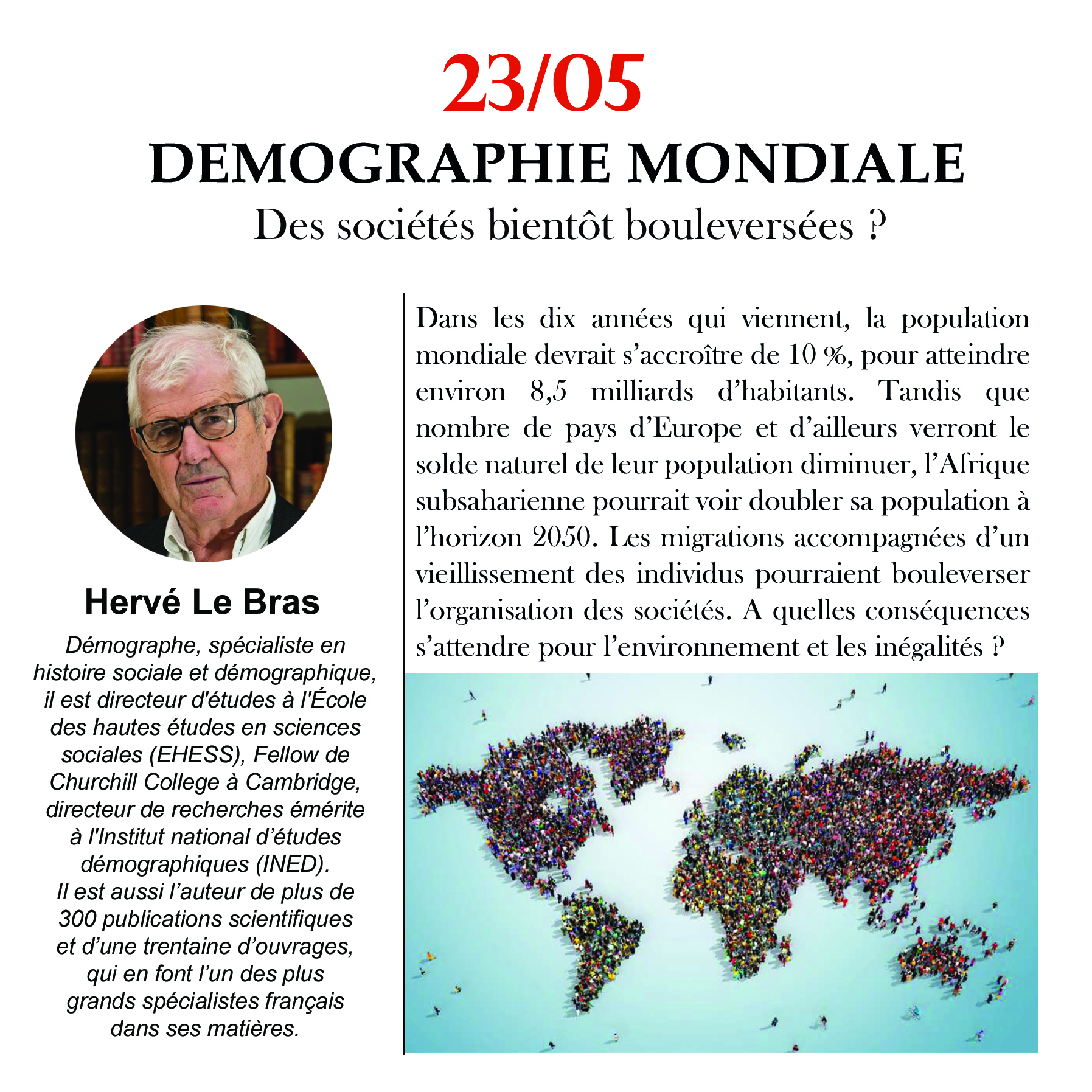 La démographie mondiale par Hervé Le Bras (Démographe) 23/05/2021- 15H - Parc Galea Plus d'infos en téléchargement et sur le site. |