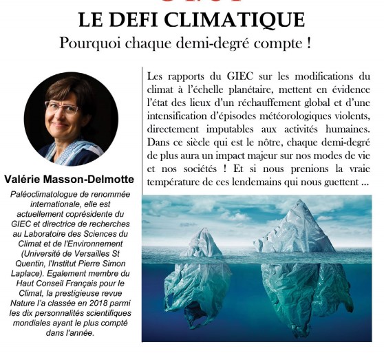 LE DEFI CLIMATIQUE par Valérie Masson-Delmotte (Climatologue) 12/06/2021- 15H - Parc Galea Plus d'infos en téléchargement et sur le site. |
