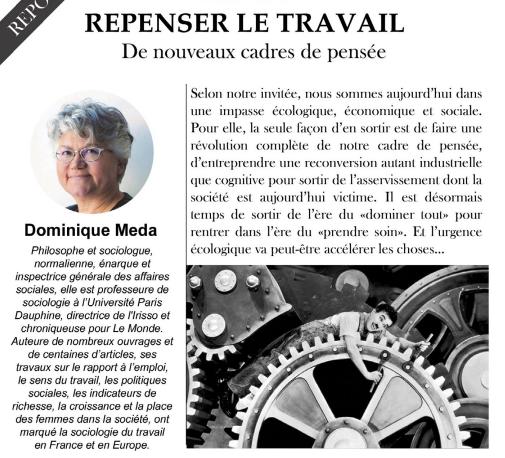 REPENSER LE TRAVAIL par Dominique Meda (Sociologue) 25/09/2021- 15H - Parc Galea Plus d'infos en téléchargement et sur le site. |