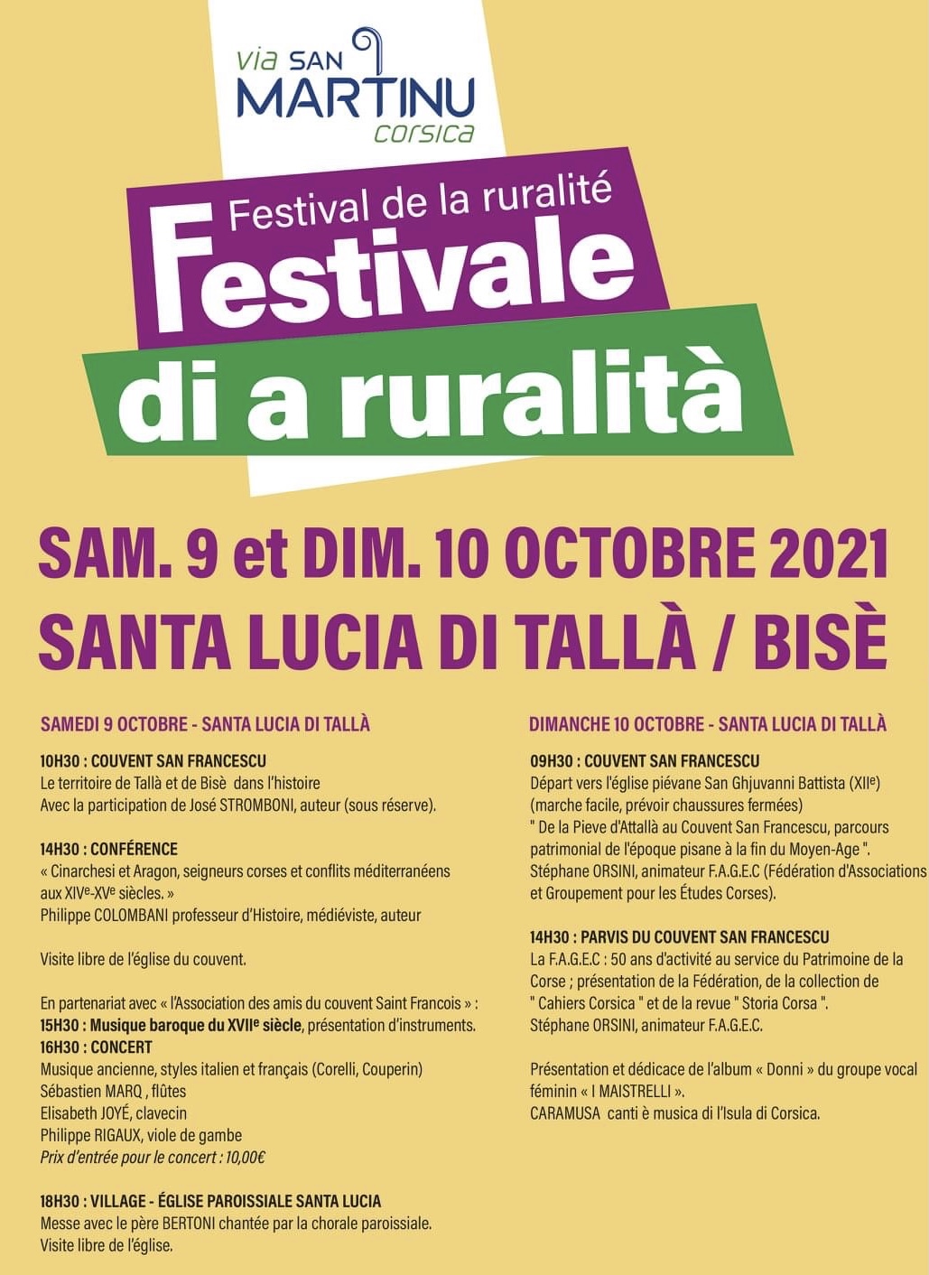 Santa Lucia di Tallà - Bisè Samedi 9 et Dimanche 10 Octobre Découvrez le programme en téléchargement. Plus d’infos sur le site. |