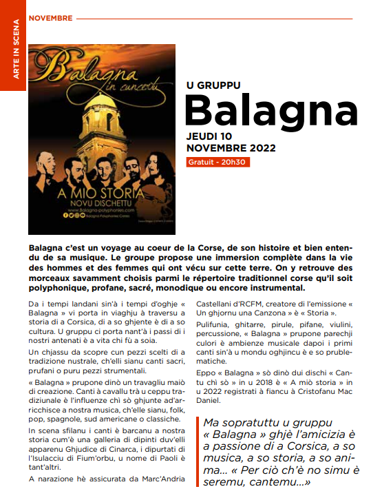 Groupe Balagna en concert - Spaziu Culturale Carlu Rocchi - Biguglia