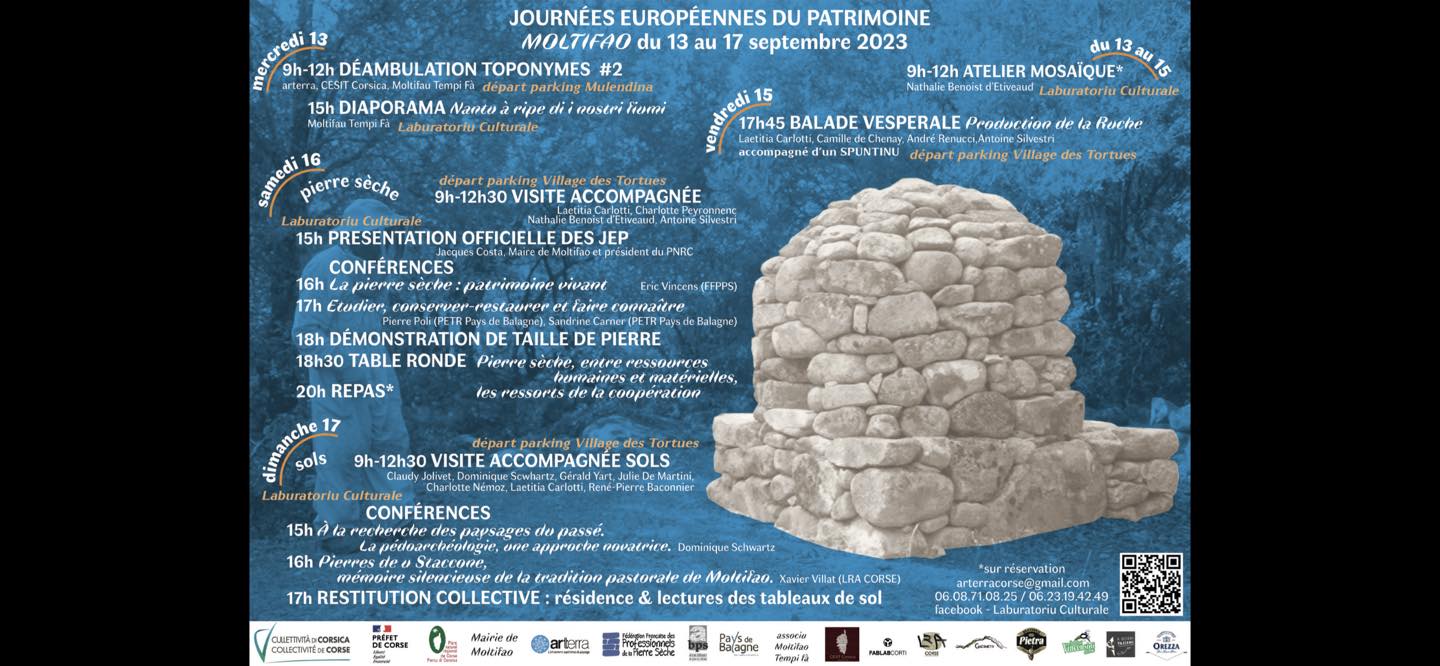 Les Journées Européennes du Patrimoine se dérouleront à Moltifau du 13 au 17 septembre avec au programme : déambulation toponymes, diaporamas, visites, conférences, ateliers , table ronde...