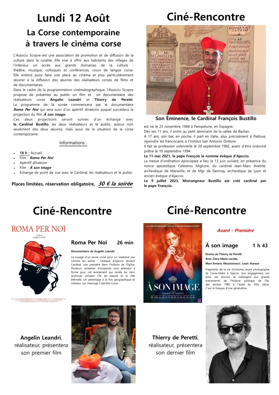 "La Corse contemporaine à travers le cinéma corse" : Ciné-Rencontre : Angelin Leandri, Thierry de Peretti et le Cardinal Bustillo - Salle Maistrale - Marignana