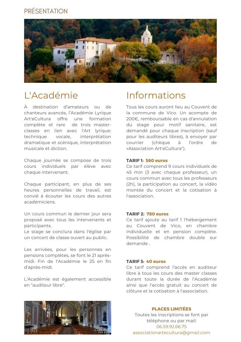 Masterclass proposées par l'Académie Lyrique "Art'eCultura" - Couvent - Vico