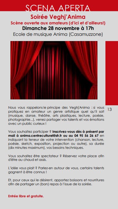 Scena aperta : Soirée Veghj’Anima - Ecole de musique Anima (Casamuzzone)