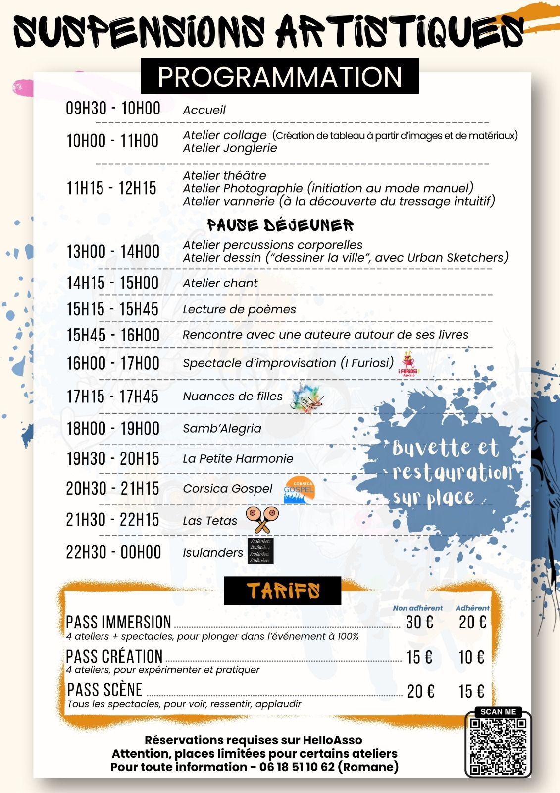 Samedi 28 mars de 10h à minuit Point de suspension - Aiacciu I Furiosi - Troupe d'improvisation théâtrale d'Ajaccio sera au programme de l'événement "SUSPENSIONS ARTISTIQUES " qui aura lieu le SAMEDI 28 MARS à Point de Suspension à l'initiative de notre photographe préférée ! Au programme : ateliers, expos , rencontres, spectacles , concerts ! Bref le BONHEUR ! Découvrez le programme en téléchargement. Plus d'infos sur le site. |
