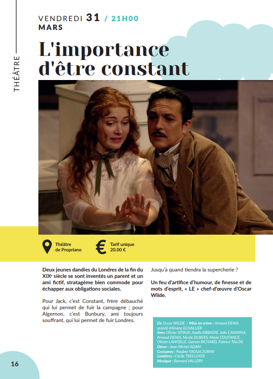 Théâtre "L'importance d'âtre constant" - Théâtre - Prupià