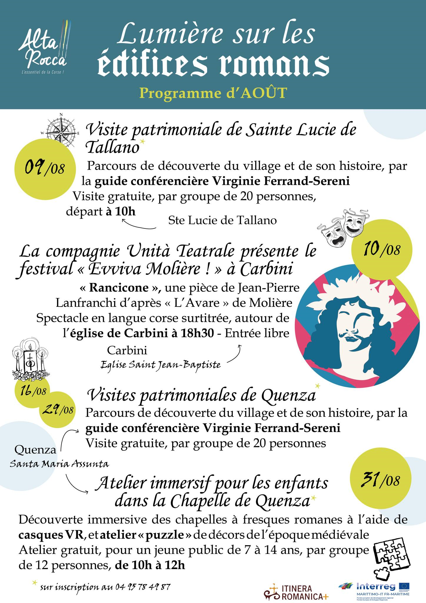 Les visites et ateliers sont gratuits sur inscriptions au 04 95 78 49 87